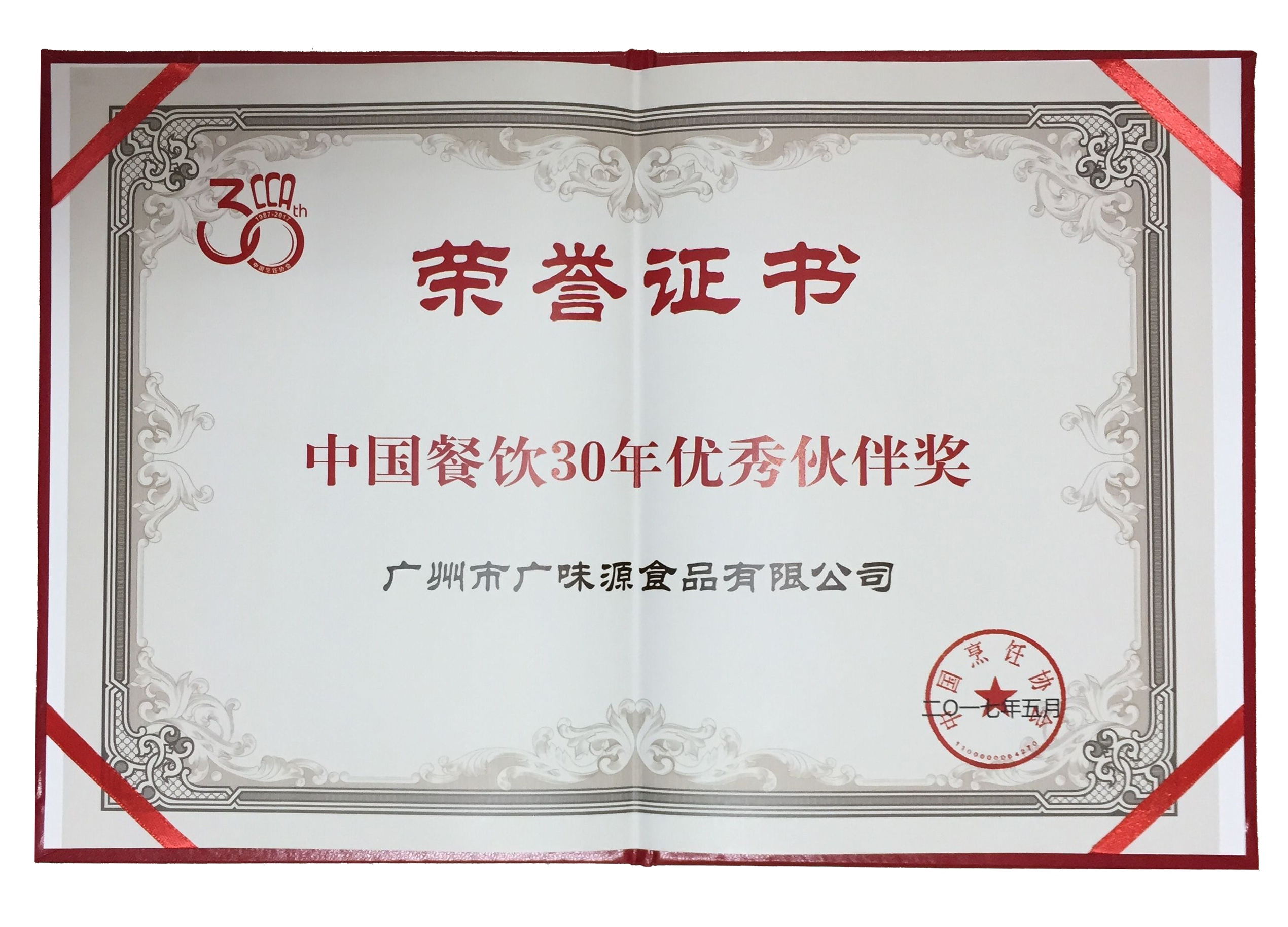 熱烈祝賀我司榮獲“中國(guó)餐飲30年優(yōu)秀伙伴獎(jiǎng)”