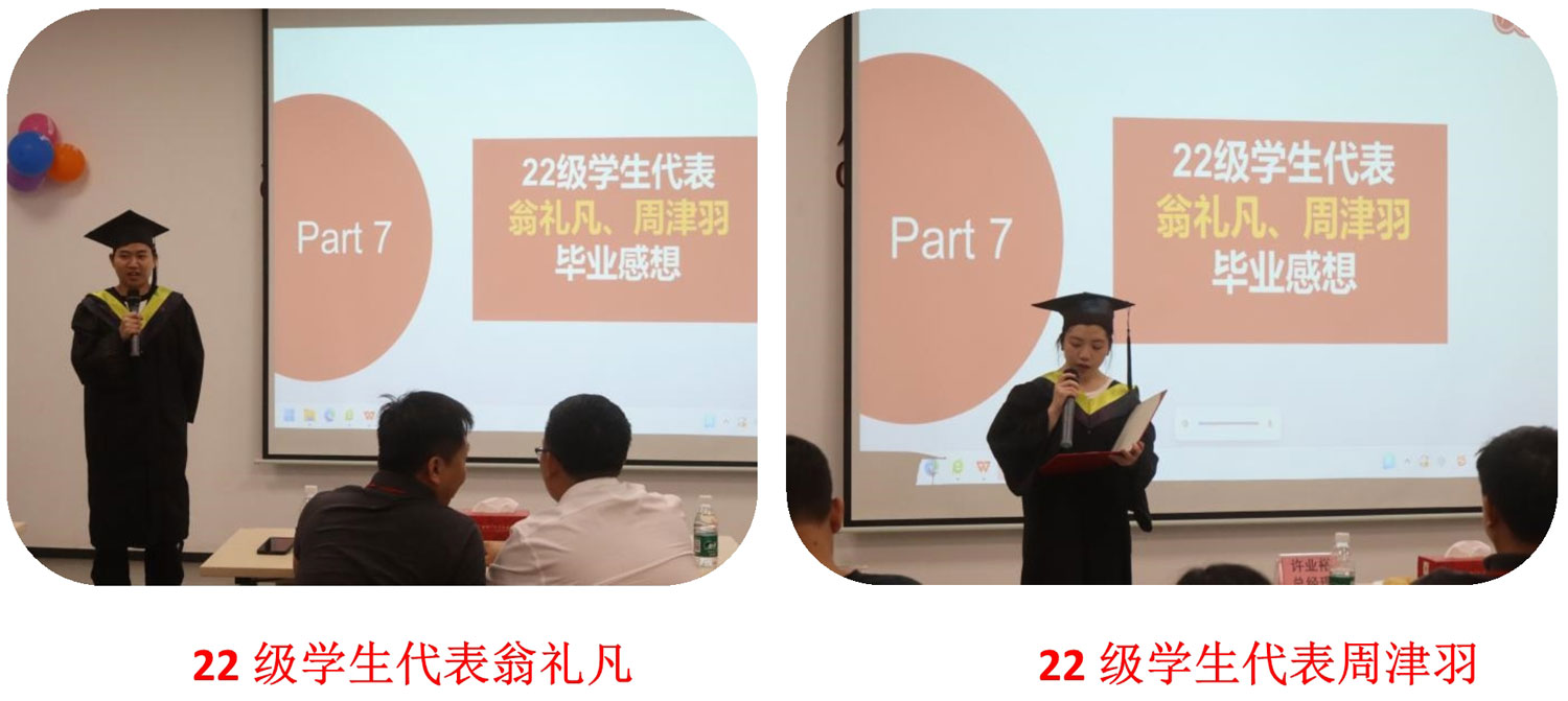 19級、20級、21級的師兄、師姐們和課長、主任因工作未能到現(xiàn)場親自送上祝福,但他們給22級的畢業(yè)生錄了祝福視頻,每一個鏡頭都讓人感動!他們祝愿22級的畢業(yè)生們在工作中鍛煉自己各方面的能力,追逐快樂生活,成為更好的自己。