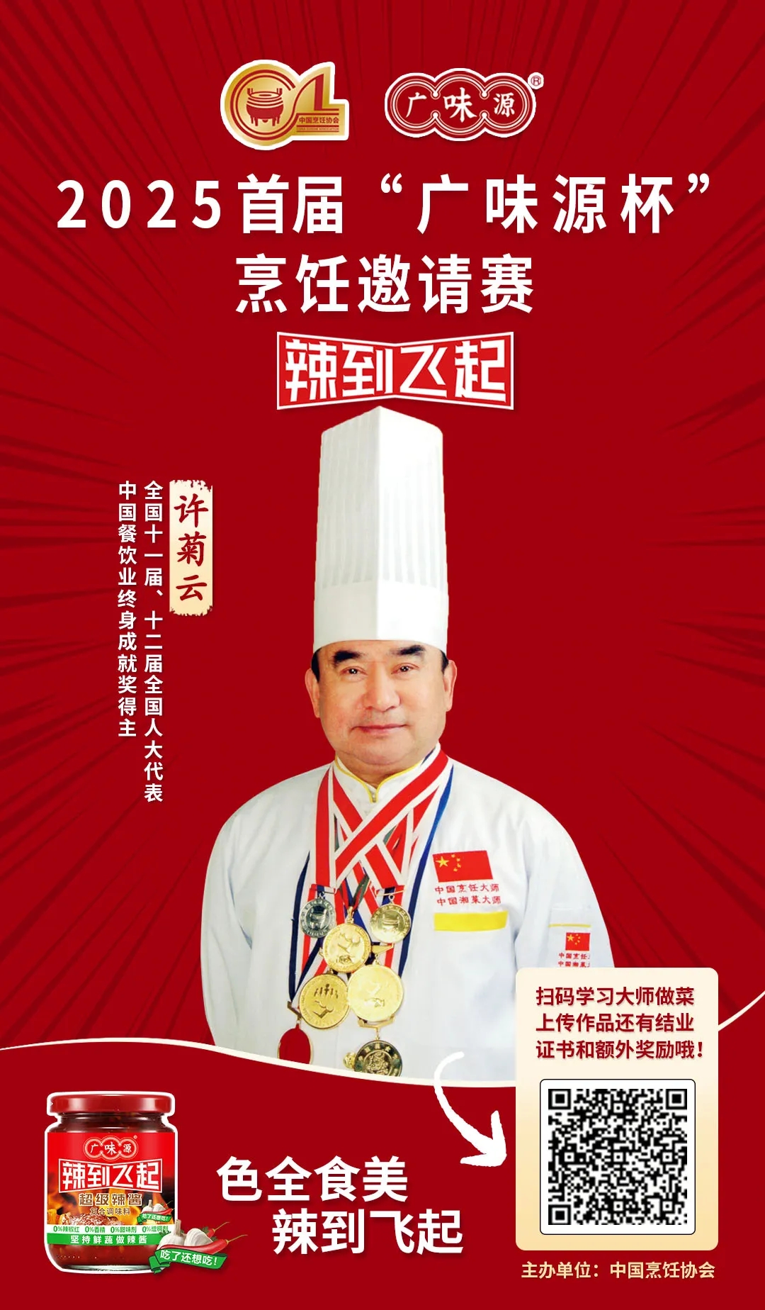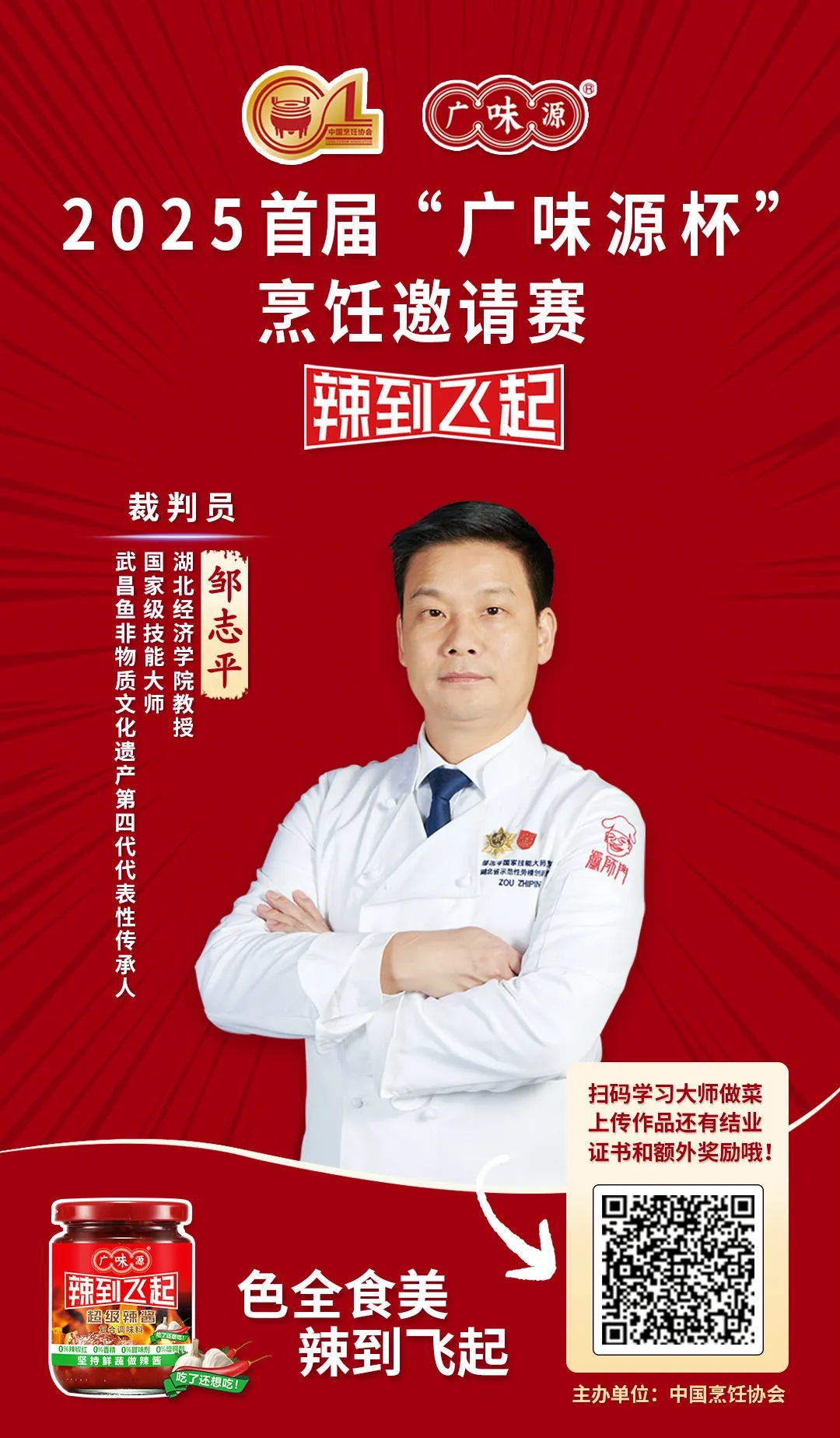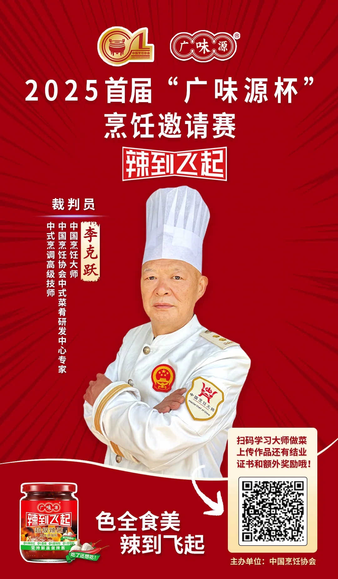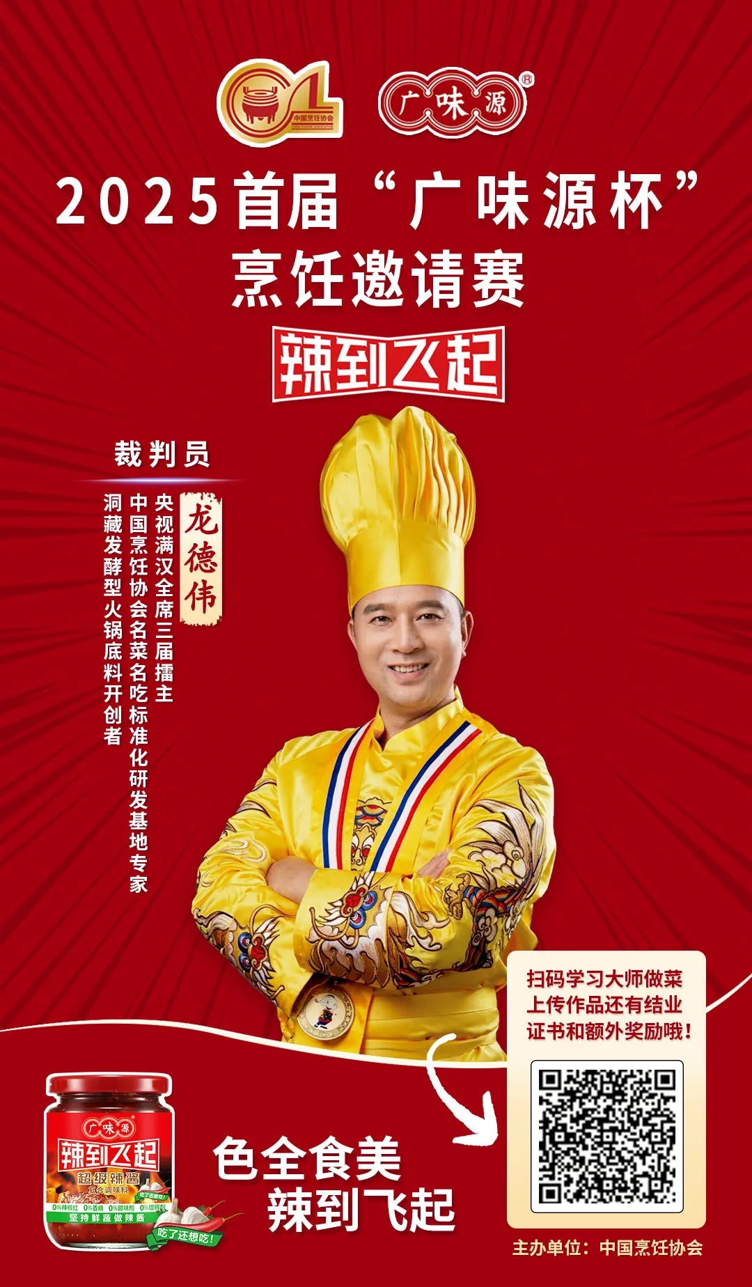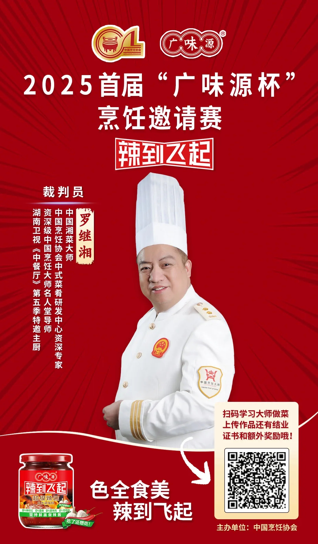 作為百年醬香世家的傳承者,廣味源始終以“匠心釀造”為魂。本屆大賽以“廣味源辣到飛起”之名,泰斗坐鎮(zhèn)、名廚云集、頂流加盟、權(quán)威督審、宗師壓陣,不僅匯聚頂尖烹飪智慧,更致力于推動(dòng)中華餐飲文化在堅(jiān)守與創(chuàng)新中生生不息。我們堅(jiān)信,在如此殿堂級(jí)評(píng)審天團(tuán)的見(jiàn)證下,每一位參賽廚師都將以極致技藝,在“廣味源杯”的舞臺(tái)上,書寫屬于自己的味覺(jué)傳奇!