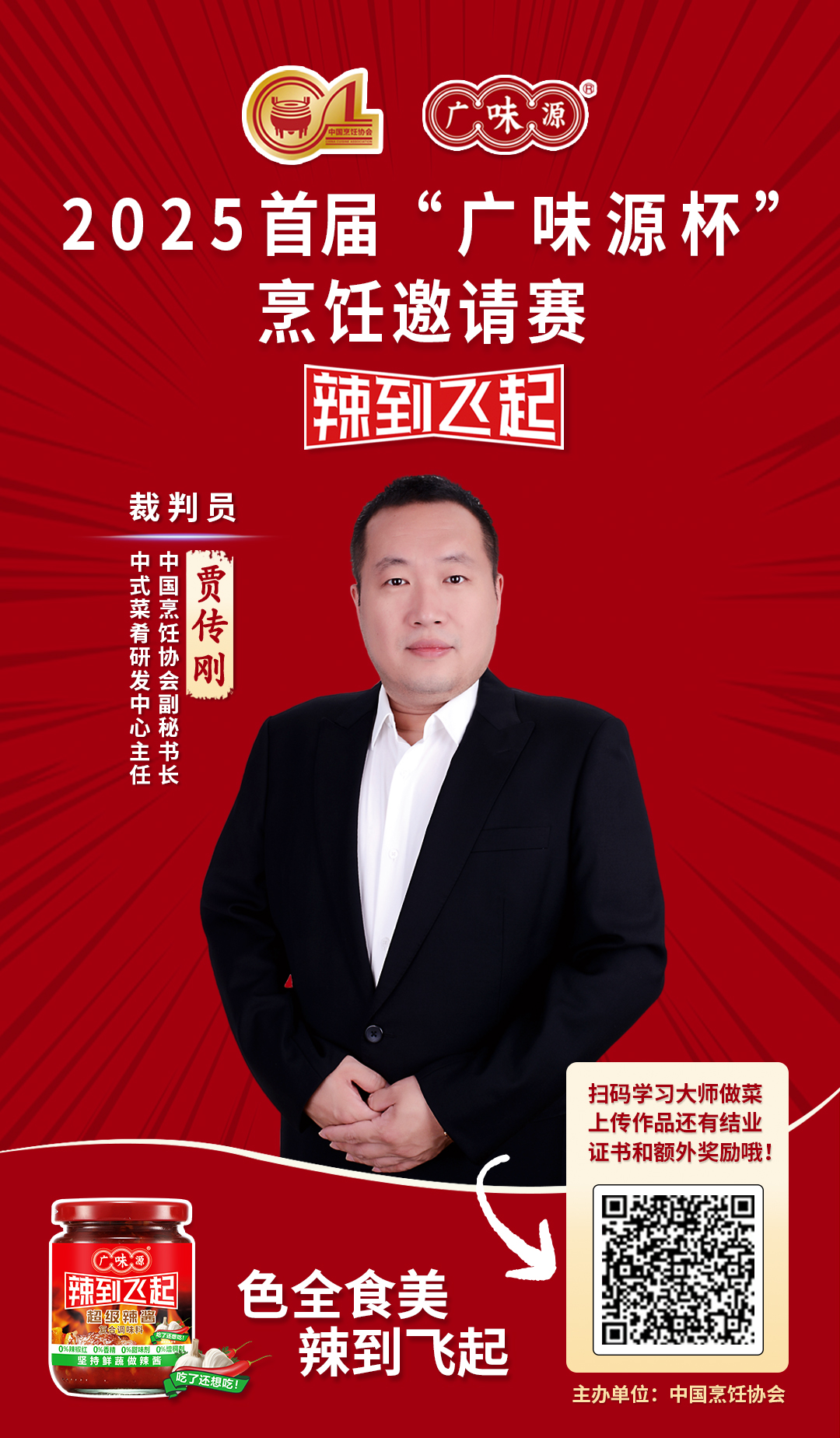 大賽特設(shè)總監(jiān)審長(zhǎng),由中國(guó)烹飪協(xié)會(huì)協(xié)會(huì)副秘書長(zhǎng)兼研發(fā)中心主任賈傳剛先生親自擔(dān)綱!作為行業(yè)規(guī)范與發(fā)展的引領(lǐng)者,賈監(jiān)審長(zhǎng)將以國(guó)家級(jí)專業(yè)視角與絕對(duì)公信力,全程督導(dǎo)評(píng)審流程,為賽事的最高水準(zhǔn)與公平透明構(gòu)筑堅(jiān)實(shí)后盾,確保“廣味源杯”成為業(yè)界標(biāo)桿。