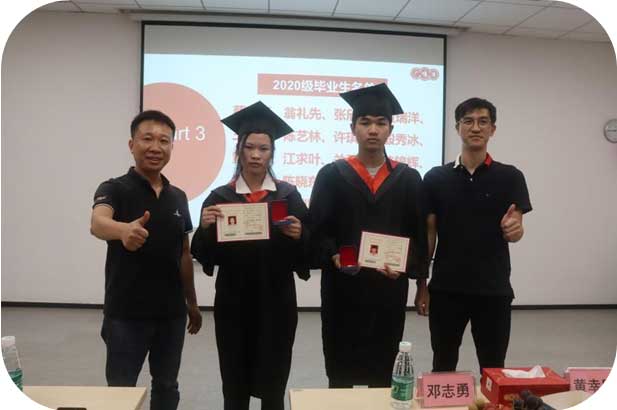 許總經(jīng)理、鄧主任為2020級(jí)畢業(yè)生代表頒發(fā)畢業(yè)證書及勛章